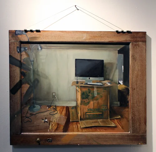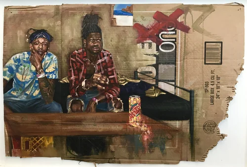 Oil paint on found cardboard